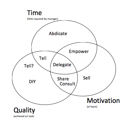 If you’re pushed for time and still want a quality job then it’s either Tell them exactly what to do, or take a risk and Delegate.